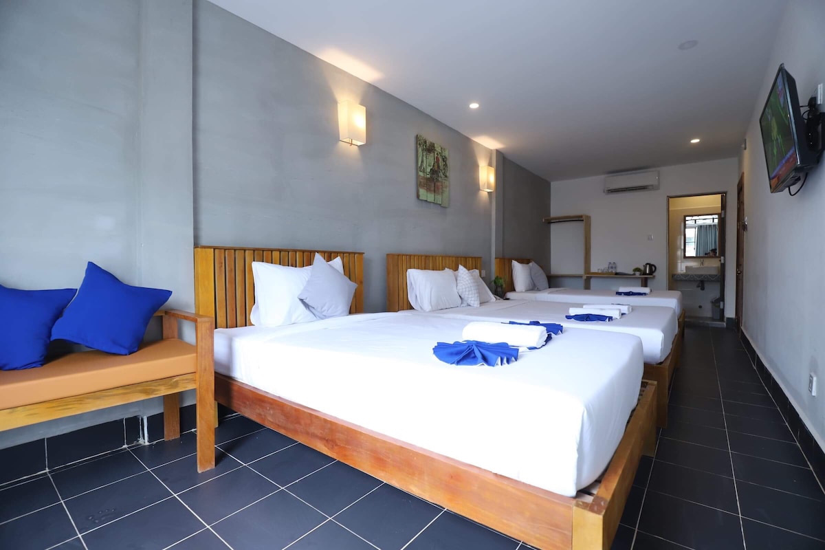 Standard Double rooms are size 16 sq m with queen size bed come with essential amenities. Available in both at traditional Khmer villa and contemporary building.Standard Double rooms feature complimentary Wi-Fi, flat-screen TV with international channel.