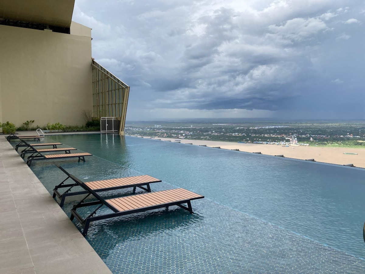 Ce logement est unique à Phnom Penh un immeuble PENTHOUSE RÉSIDENCE 5 étoile de 43 étage avec une beauté sans nom avec tous les services 24h sur 24h sécurité totale caméra ultra sécurisé. Idéal pour 2 adulte et 1 enfant Il y a une épicerie ouverte toute la nuit H24 1 restaurant CÉLESTE qui tourne a 360 degrés , Skybar restaurant japonais, piscine à débor Mon appartement est au 25 étage avec une super belle vue sur toute la ville