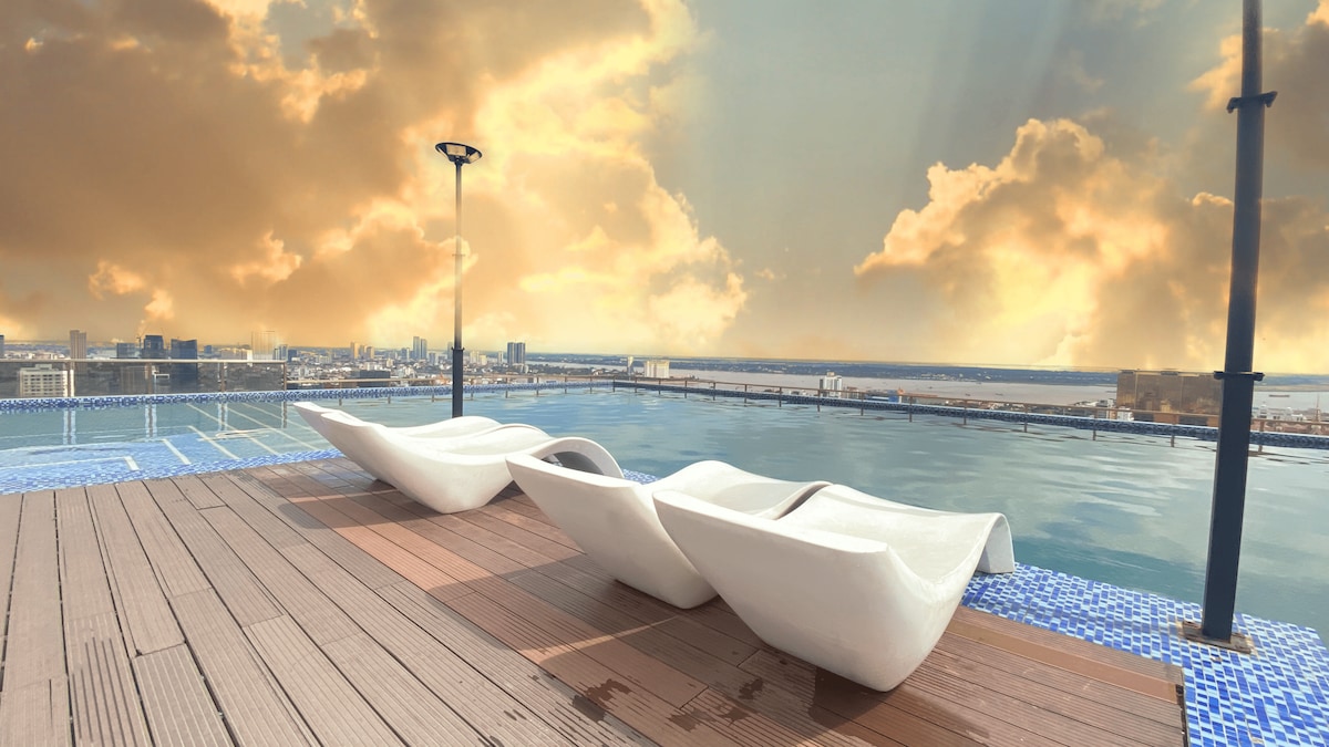 顶层公寓-Aeon PP附近的河景单间公寓