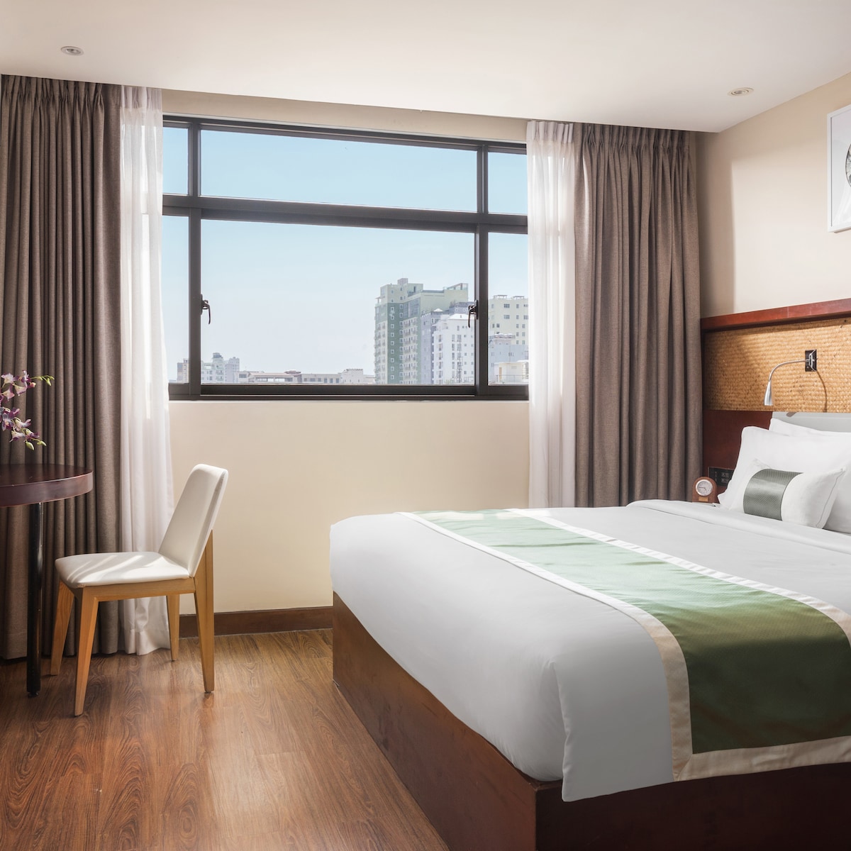 Enjoy fresh air and city views from your private balcony. This Superior Room combines comfort and boutique style with outdoor space—ideal for longer stays or relaxed mornings in Phnom Penh.