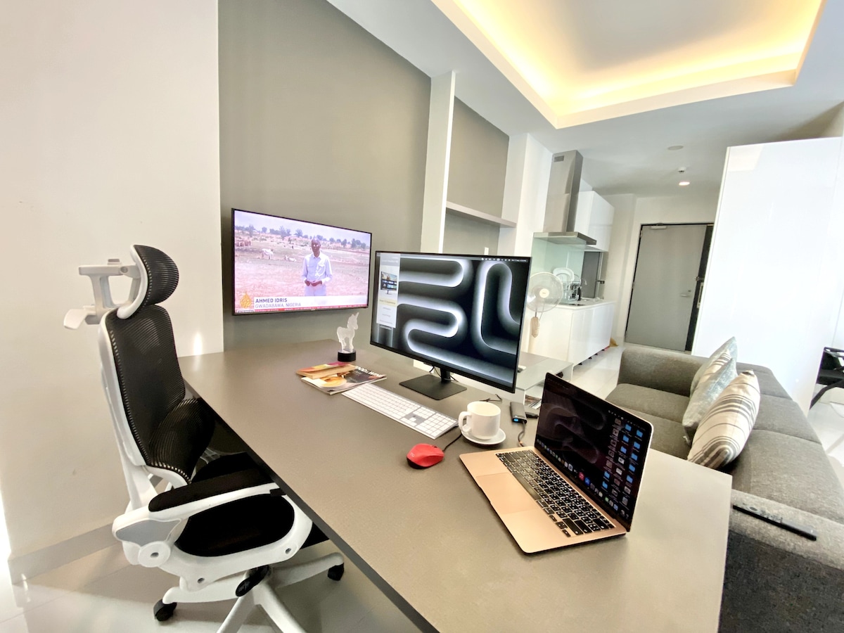 Enjoy a luxurious stay in our beautifully redesigned condo with top-notch appliances (65-inch smart TV, full kitchen, fridge, washer, smart AC, Japanese toilet…) with quality mattress and sofa. Perfect for family🥰, biz execs 💻 or lovely couples. ❤️Full amenities and services: Biz lounge, meeting room, golf simulator, Sky bar, pool, gym, coffee shop and kids playground. Extra beds available for more than 3 guests. We always keep making our house better!