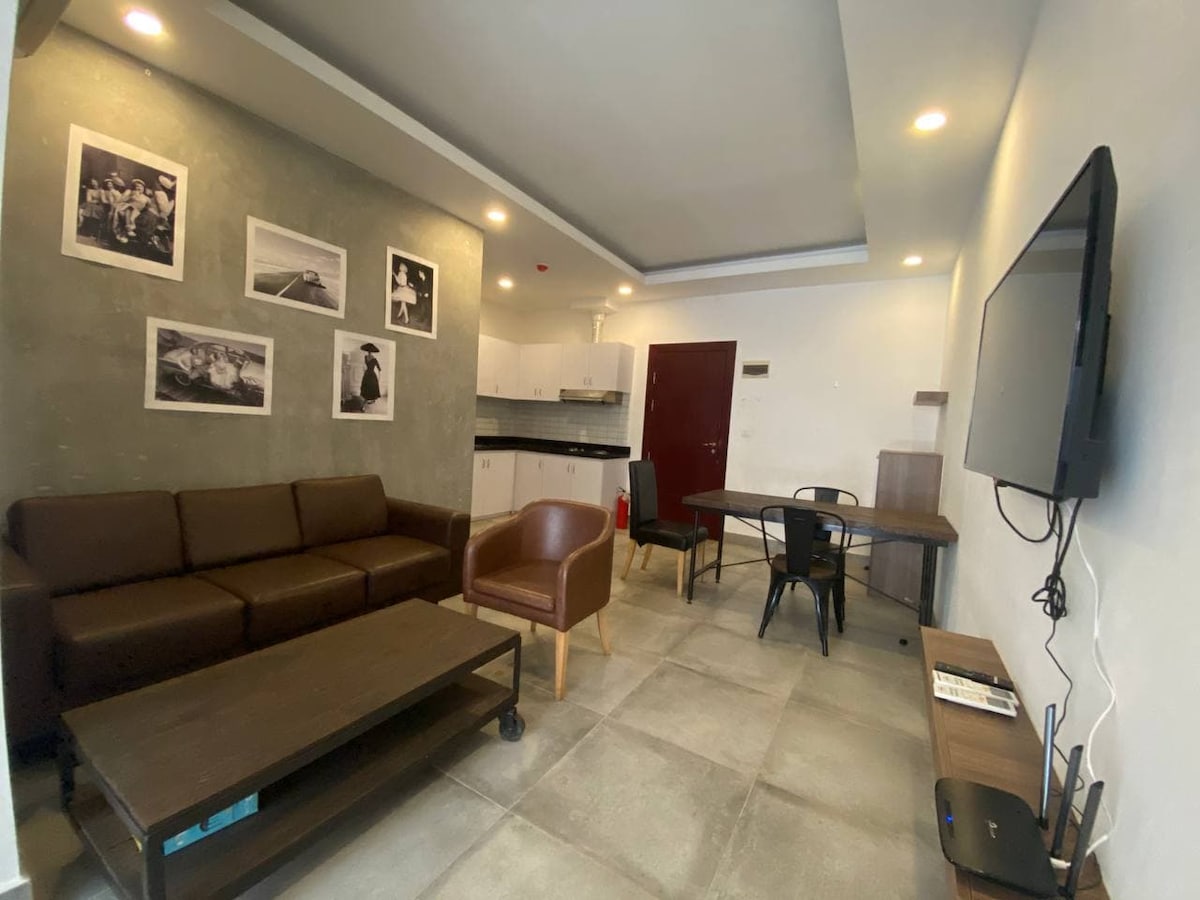 Cozy, well-equipped apartment in central Phnom Penh, ideal for work and relaxation. It includes a bedroom, private bathroom, spacious work desk, and a fully equipped kitchen. Ideally located in a central area, you'll be close to all the best restaurants, shops, and attractions. - 10 mins to AEON Mall 1 - 5 mins to S21 prison - 10 mins to Royal Palace - 2 mins to Toul Tom Pong Market (Russian Market)