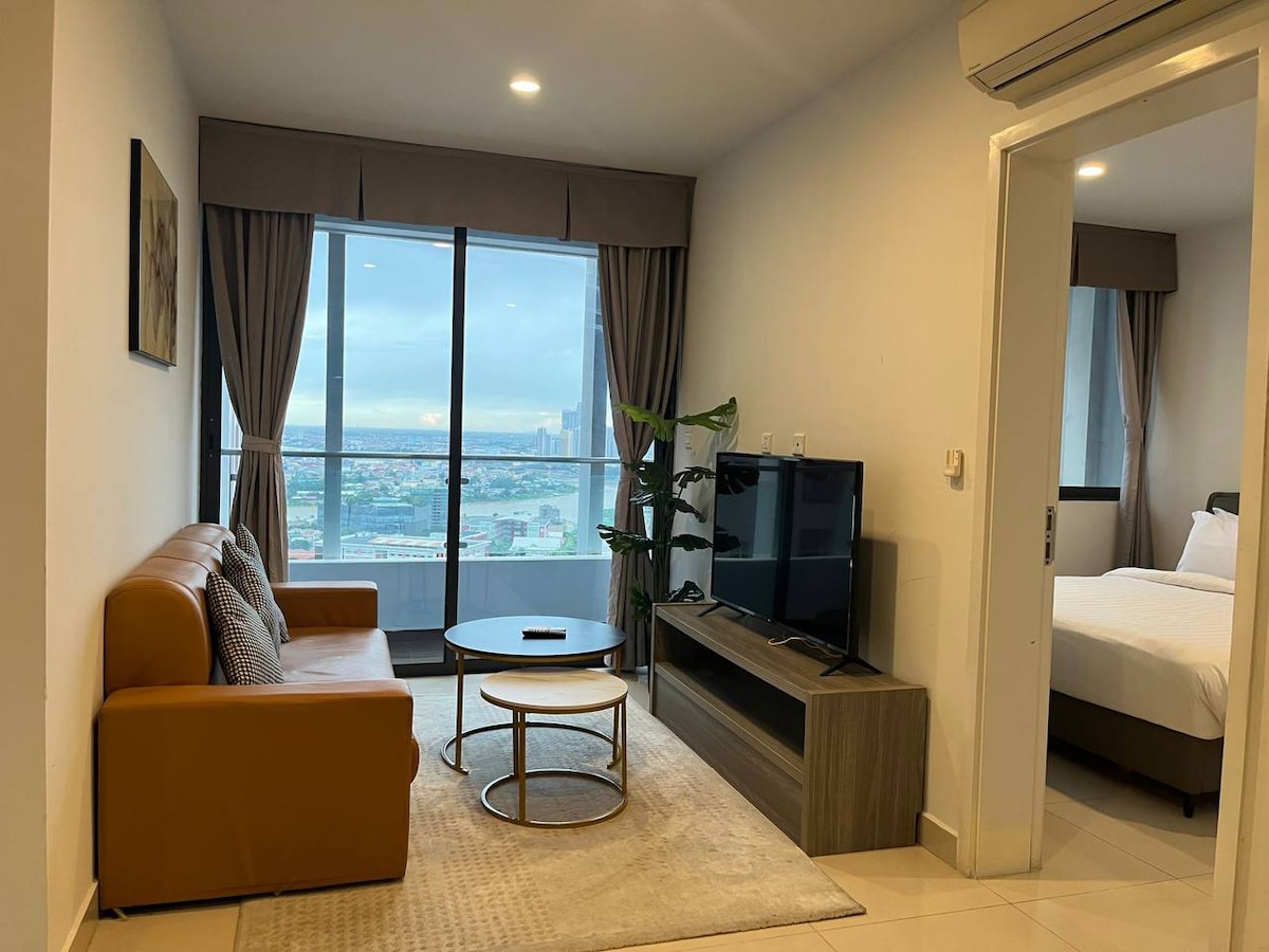 *Please note that for monthly stay (from 28 nights), there'll be an electricity charge at the rate USD 0.25/kwh. *Kindly message us if you need air port pick-up The bright & comfort 115sqm 2-bedroom apartment comes complete with a spacious balcony, a tranquil living space with views of the city and river, with modern appliances, cutlery, crockery, and kitchen utensil drawer organizer, a dining area, a storage room with washing machine, and a shoe cabinet.