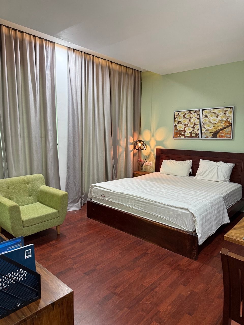 This place is excellent for Couple or expert with medium and long-term stay during their business in Cambodia. It is fully furnished and modern style decoration. It has the Mekong river view in the heart of Phnom Penh city, Koh Pich with very close access to shopping mall and super-market, Royal Palace, National museum, and taking boat tour along Chak Tomuk River.