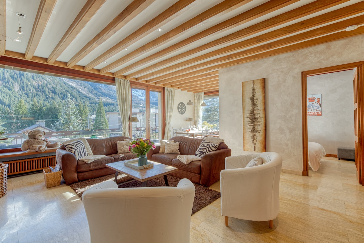 Our chalet designed with care, with its vast garden and spectacular mountains scenery, is ideally situated in an exclusive neighborhood on the sunny side of the valley. You are just 2 minutes drive from Chamonix center where it's all happening ! Hikes, spa, swimming pool, climbing and nature in the Alps.