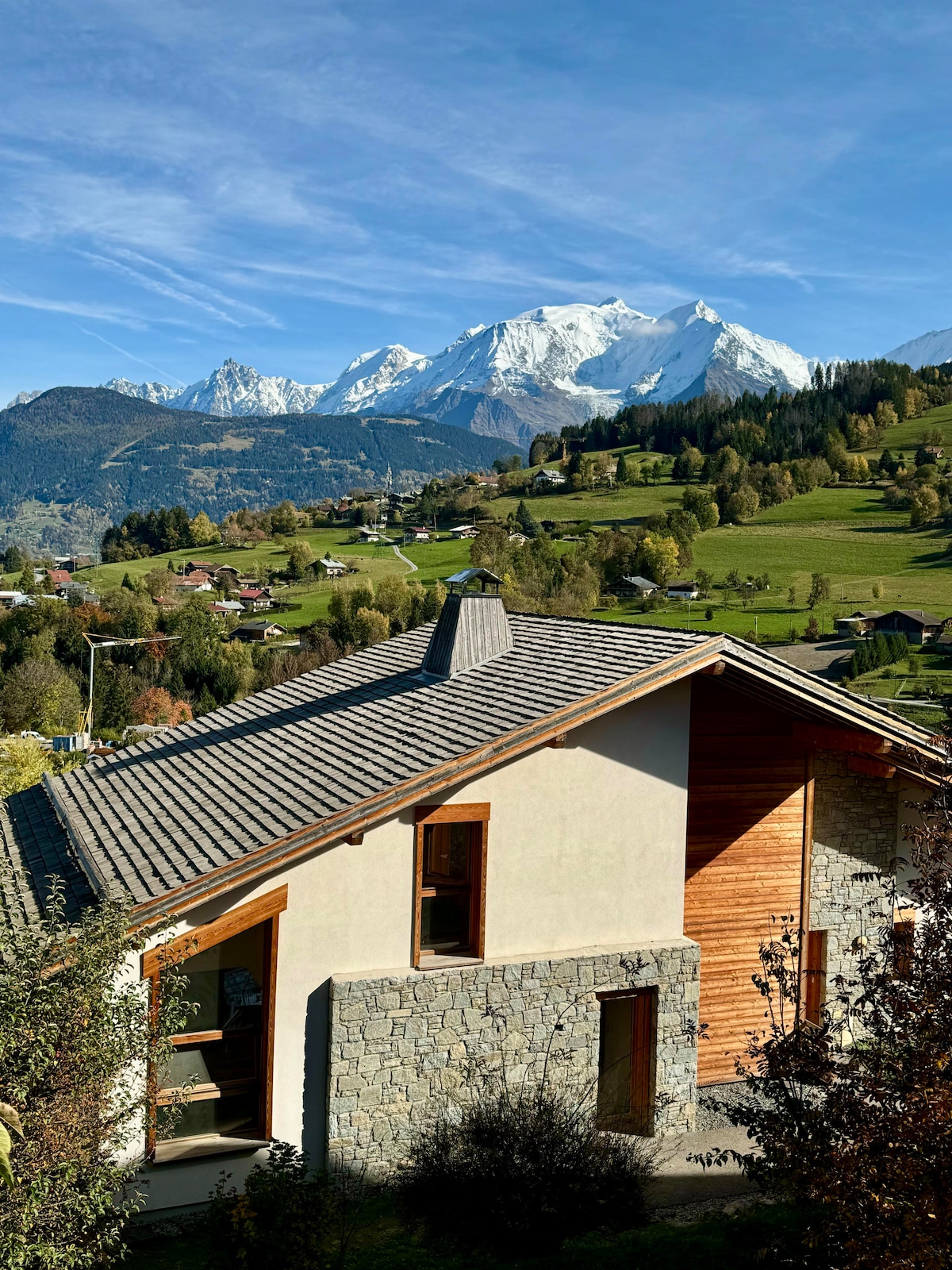 Welcome to our comfortable, fully-equipped chalet in Chamonix with stunning mountain views. This modern, newly-built chalet has 3 bedrooms, each with its own bathroom. Towels, sheets and cleaning included. There's an outdoor jacuzzi. Optional access to Spa room with Swim spa inside (heated to 28°C) and Sauna. Please contact us if you want this option. The kitchen and living room are on the 1st floor, as is the large bedroom with balcony. The other 2 bedrooms are on the ground floor.