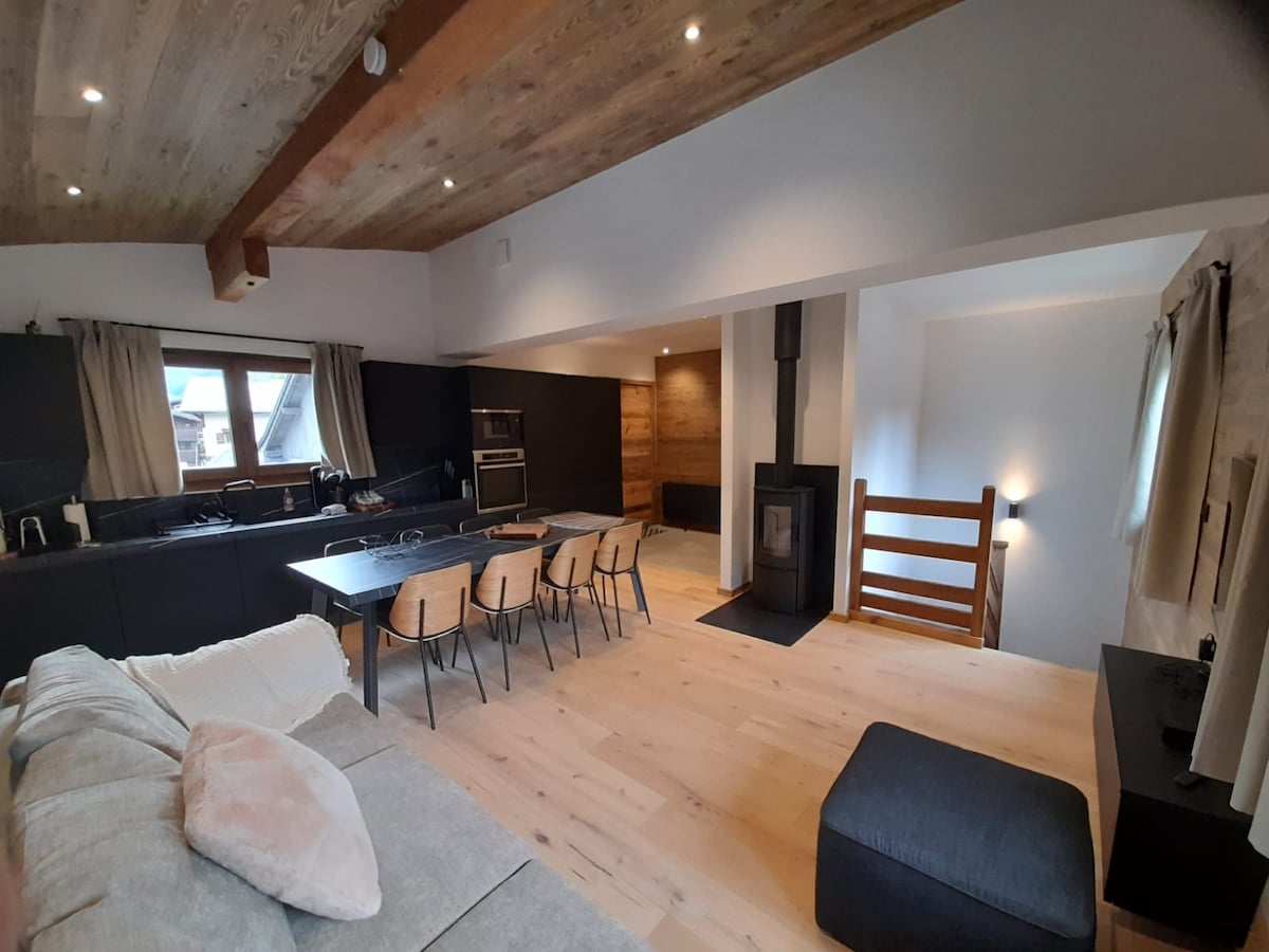 Aux portes de Chamonix,gîte de standing classé 4* , aménagé dans une ancienne ferme savoyarde de caractère entièrement rénovée. Aménagement intérieur de type chalet, à la fois cosy, moderne, et chaleureux. Commerces et navette skieurs à 200m. Sauna privatif. Draps et serviettes fournis,WiFi, Netflix,Appareil à raclette/pierrade et fondue.Cuisine tout équipée[four, lave vaisselle, micro-ondes, grille pain, machine à café, bouilloire, frigo américain] +d’infos : www.chaletlafermedubourgeat