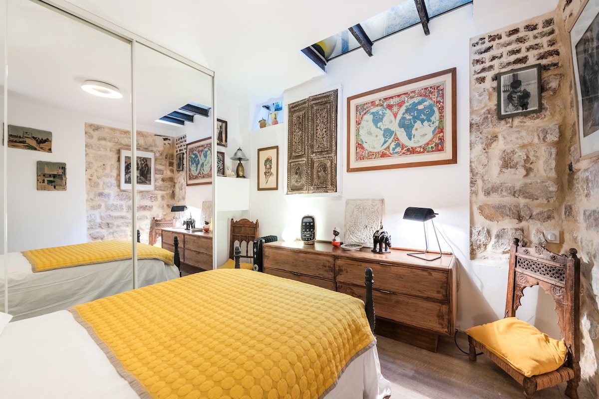 At the ground floor of a 18th century property, on two floors of 85sm, brand new house freshly designed by an interior designer. All the experience was made for a maximum independence and discretion. Private entrance, the house has an american kitchen on living room, a bedroom with view on the street, and a Luxury Parental Suite with private bathroom, tv, fast wifi and mini bar. As a Luxury Countryside House in the very heart of Marais, the « coolest street of Paris » says the new economist.