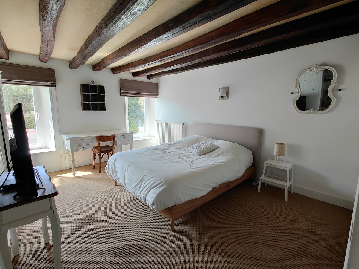 Nestled by the river Seine, in an artist village in the region of Champagne, this former priory is located only 100km from Paris (55mn direct train between the neighboring Nogent s/Sein and Gare de l'Est). This is an authentic and ressourcing place, newly renovated, loaded with 400 years of history. We have decorated the house with love and care, the equipment is very generous. Bikes of diverse sizes (for adults and children), kayaks, SUPs and other inside and outside equipments are available.