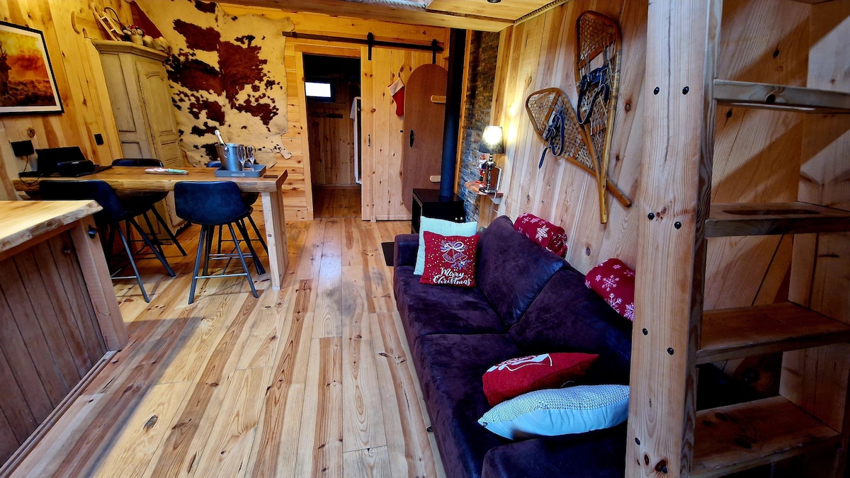 Bienvenue et bon séjour dans notre cabane perchée. Cette petite cabane en bois a été construite entièrement par son propriétaire en 2019. Les matériaux proviennent d’arbres des alentours et de la récupération. Hiver comme été, elle vous permet de vous ressourcer, de souffler et de passer une nuit au calme et en hauteur... Si le temps est de la partie, un barbecue est à votre disposition sur la terrasse.