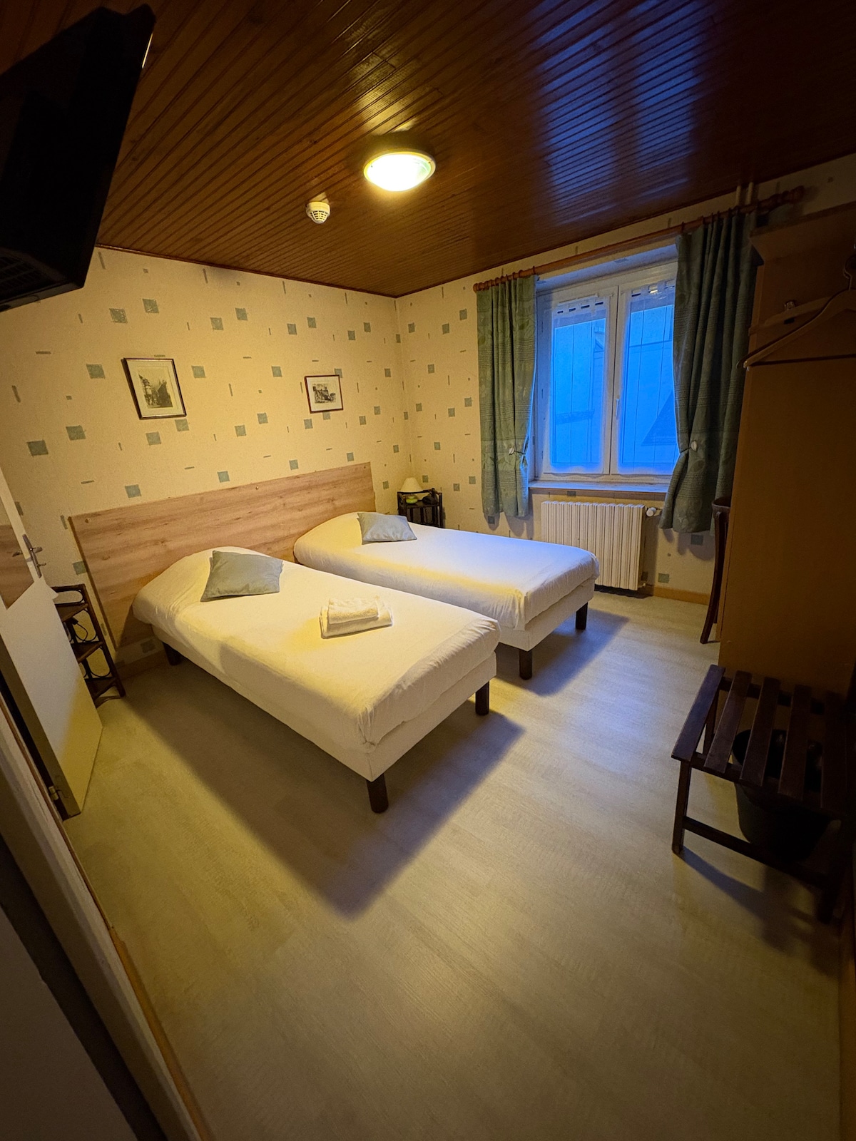 1 chambre de 2 personnes avec salle de bain privative dans un hôtel au coeur de la campagne. L’hôtel dispose d’un restaurant. Nous sommes à 20km du parc Nigloland et 3km du lac d’amance