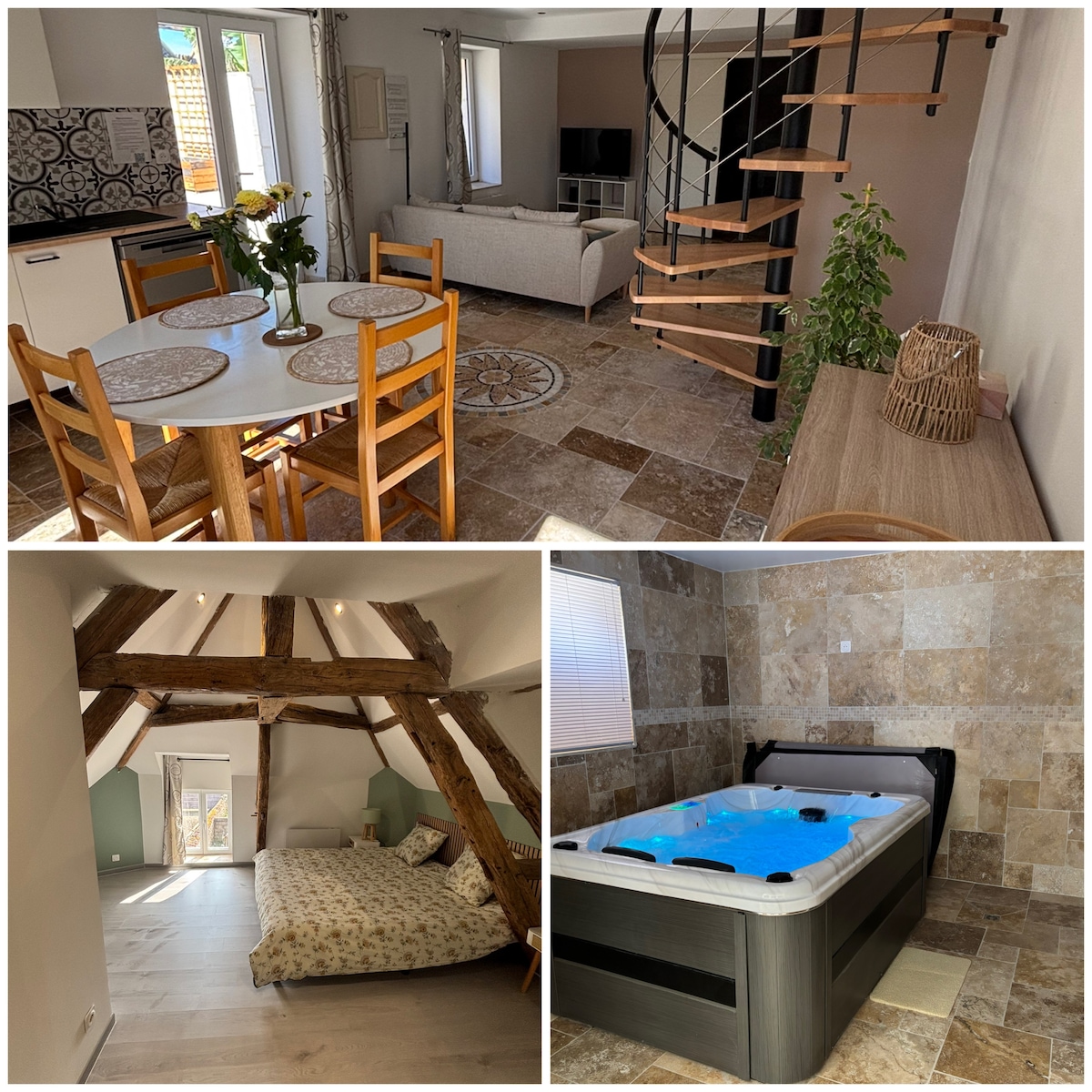 Old barn of more than 400 years old with independent entrance, a large main room, a bathroom / WC and a separate bedroom. An awning/patio with BBQ, darts. Your house is attached to mine. See internal regulations Max : 6 pers October to March / April : Pool closed ; option Jacuzzi 40€/night April to september : heated pool and private Jacuzzi included. Check-in from 16h. Check-out until 11:00 No parties or significant noise pollution Please to meet you !