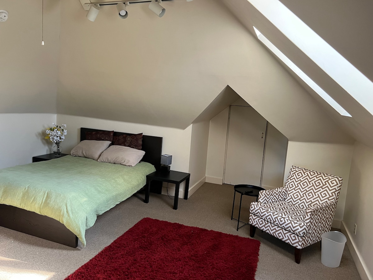 靠近市中心的宽敞卧室,带独立卫生间