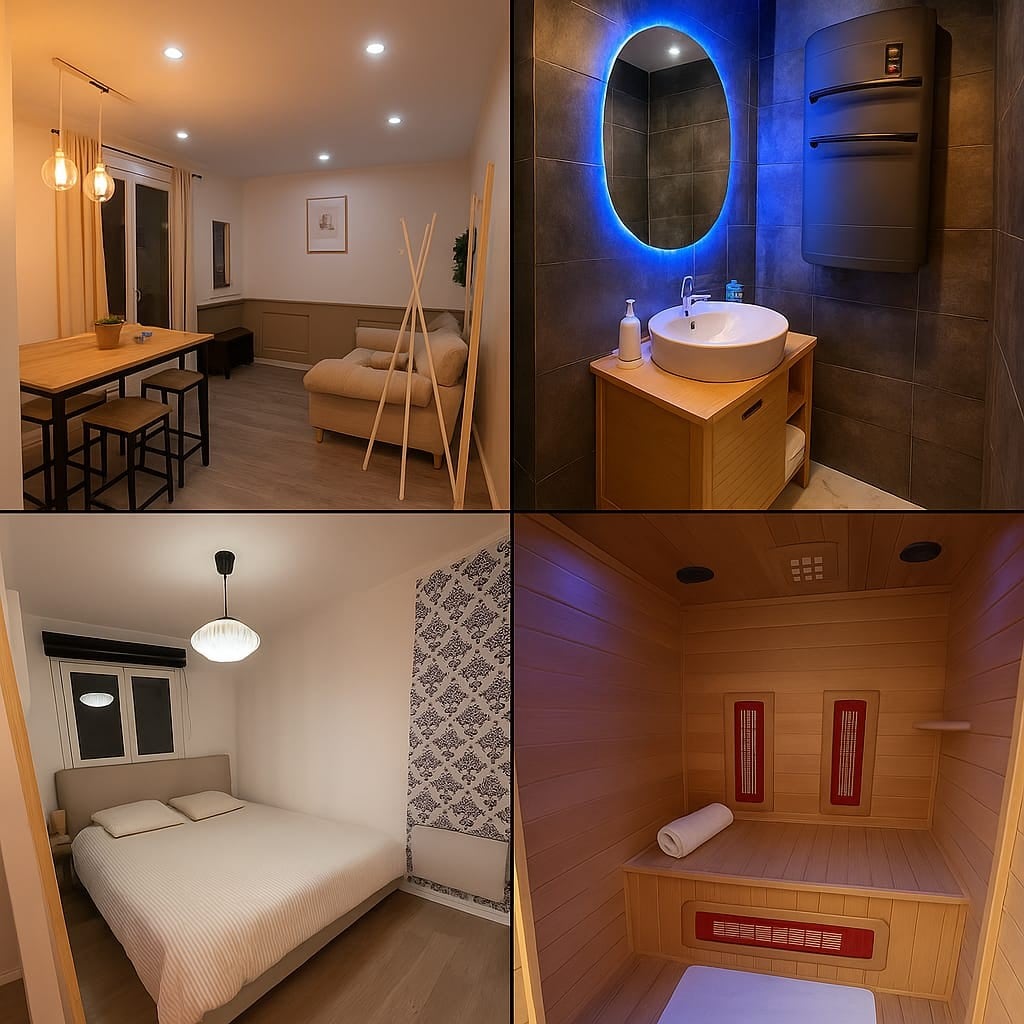 🔥 Profitez de la Maison Apollon® avec son jacuzzi Privé à 40 degrés ! ✅ Réservez dès maintenant et vivez 4 expériences uniques : 🫧 Un Spa jacuzzi® 78 jets hydro massages 💜🍿Un salon cosy avec jeux de lumières entièrement personnalisable et système son pour la musique et films 🌴Une terrasse végétale cocooning 🎬 Le fabuleux rétroprojecteur dans la chambre (option)