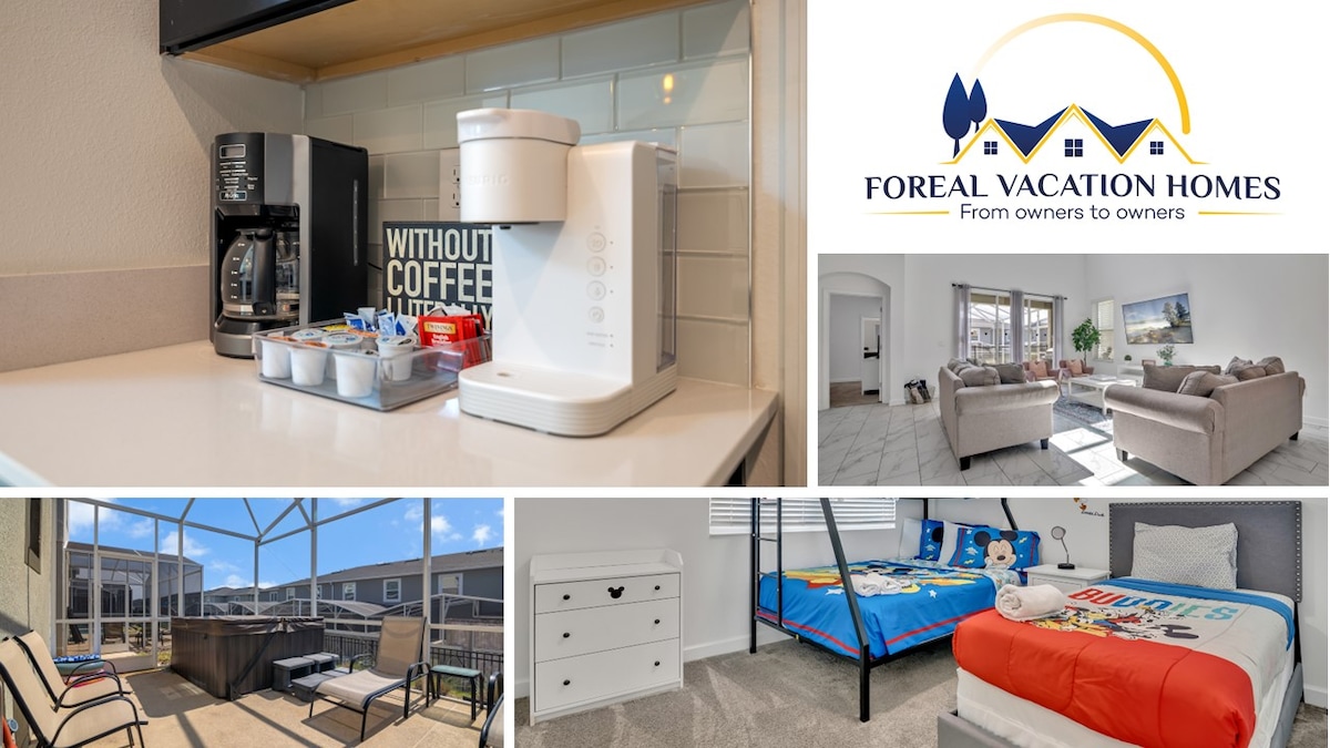 The perfect balance of STYLISH DESIGN, LUXURIOUS COMFORT, & ENDLESS ENTERTAINMENT, beautifully situated with stunning views in the sprawling 3.5 square mile Reunion Resort. You will have your own private pool, spillover spa, STAR WARS cinema-game room with pinball, classic arcade games, and karaoke, MARVEL kids room with tube slide and double bunks, the latest Xbox Series S, a sprawling 2000 ft2 pool deck, fire pit, and even a HARRY POTTER cupboard hidden under the stairs, minutes to Disney.