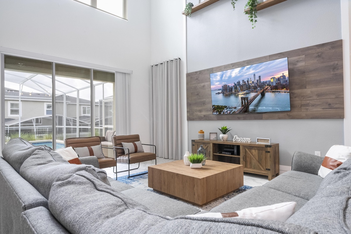 The perfect balance of STYLISH DESIGN, LUXURIOUS COMFORT, & ENDLESS ENTERTAINMENT, beautifully situated with stunning views in the sprawling 3.5 square mile Reunion Resort. You will have your own private pool, spillover spa, STAR WARS cinema-game room with pinball, classic arcade games, and karaoke, MARVEL kids room with tube slide and double bunks, the latest Xbox Series S, a sprawling 2000 ft2 pool deck, fire pit, and even a HARRY POTTER cupboard hidden under the stairs, minutes to Disney.