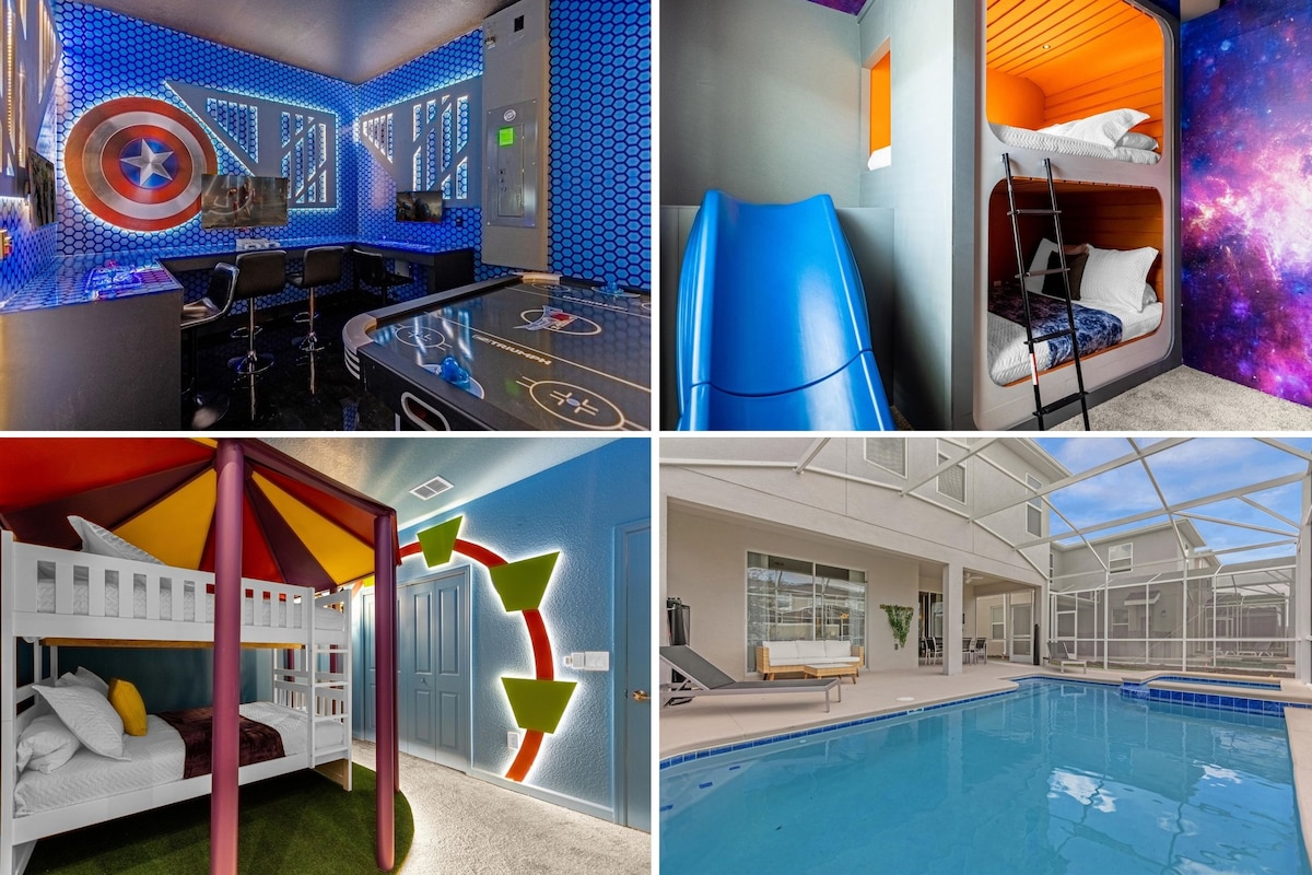 迪士尼世界15分钟!主题4卧室房源,带私人游泳池!
