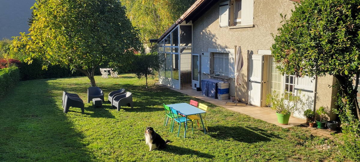 Dans un secteur calme proche de Voiron et de Centr'Alp ( 2km), Grenoble (20km),appartement au rez-de-chaussée dans une bâtisse de charme. A l'extérieur, vous trouverez votre terrasse privative avec un barbecue une piscine chauffée et un jacuzzi. A l'intérieur de l’appart climatisé 2 Tv, une pièce à vivre avec cuisine équipée, salon avec canapé convertible, une chambre avec penderie, et pour finir une salle de bains avec baignoire, WC et lave linge. Convient pour 2 adultes et 2 enfants