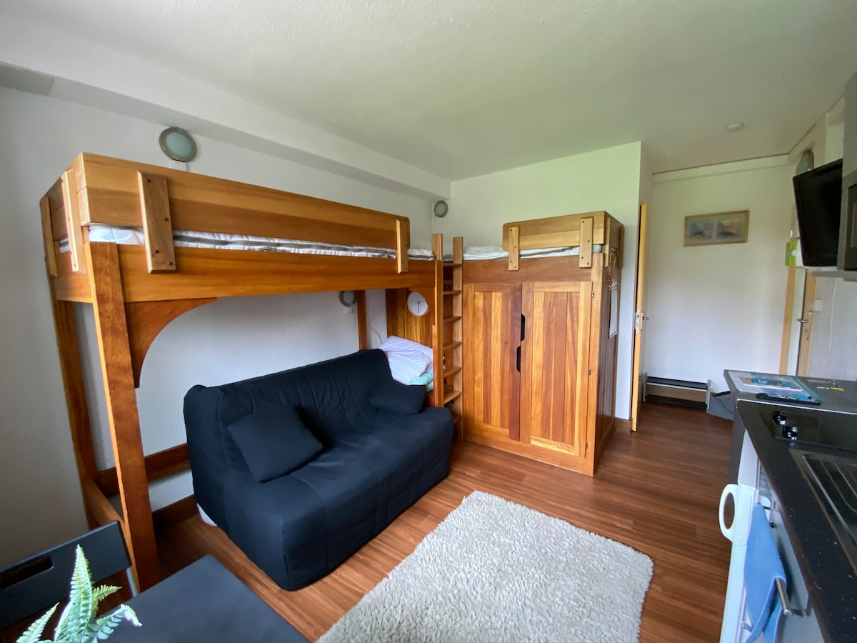 Profitez d'un logement élégant et central. Entièrement rénové par nos soins . Nous sélectionnons des voyageurs respectueux et soigneux. Il peut accueillir 4 personnes max. pour une superficie de 18m°. NON FUMEUR. PAS D ANIMAUX Linge non fourni (possibilité linge jetable-PAYANT) Arrivée à partir de 15h / départ avant 10h. Arrivée et départ en autonomie. A 150 mètres des départs de pistes, et moins de 10 min. à pieds du centre commercial. Le domaine nordique se trouve à 15 min. à pieds.