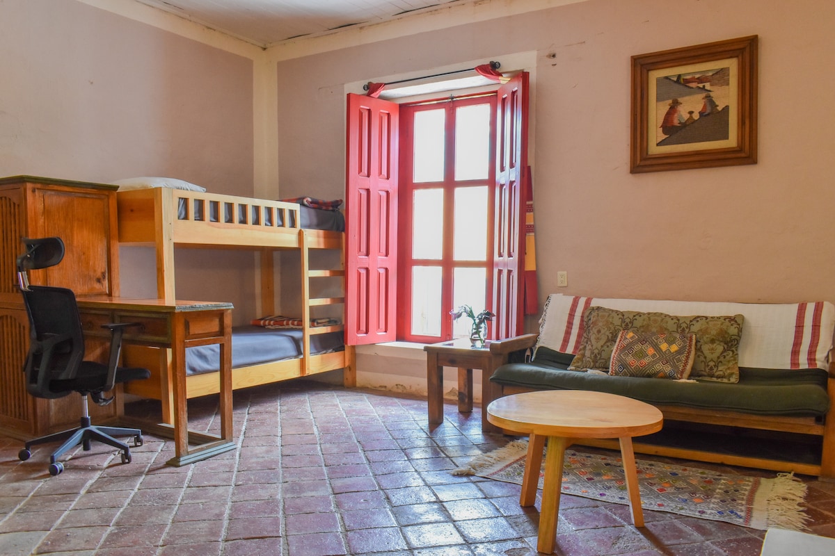 El departamento se encuentra en una casa colonial antigua, en el corazón de la ciudad, de principios del siglo xx ideal para una familia o amigos que viajen juntos, tiene la capacidad de alojar 4 personas, cuenta con dos camas king size para su mayor comodidad. Estamos muy cerca a la plaza principal, (tres cuadras y media) y dos calles en paralelo al andador de Guadalupe, donde podran encotrar una diversidad de restaurantes, tiendas artesanales y de conveniencia
