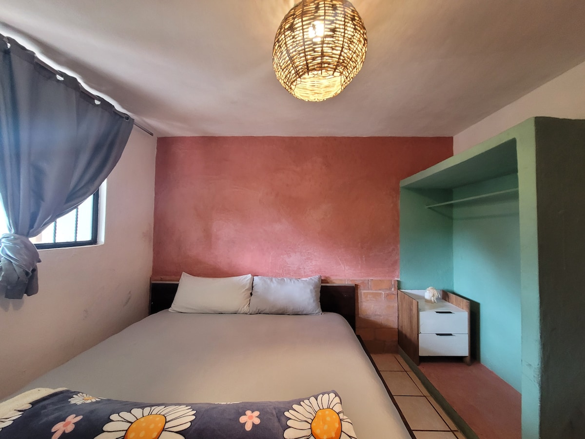 Disfruta de este confortable y bonito departamento, con decoracion y muebles de madera, con todos los servicios necesarios para disfrutar de las vacaciones o trabajar cómodamente. Se encuentra a 2.5 km del centro (25 min caminando) sobre el periférico, a un costado de la reserva ecologíca moxviquil, a 1.5 km del mercado (15min. Caminando) un lugar muy tranquilo y seguro, habitación con vista a la montaña. El trasporte publico ($7) y taxis ($40) pasan frecuentemente frente al porton de salida.