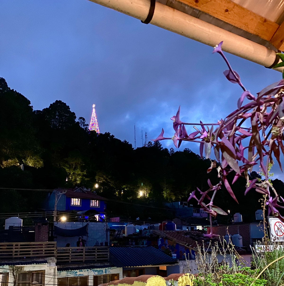 The perfect mix of down town confort and in house entertaiment for your friends or family! From watching the sunset from the hammocks on the tree house, enjoying a bonfire in the yard to laying back after a day trip with Netflix and take out, in front of the fireplace. Plus, amenities like a spacious and equipped kitchen, yard games and even a michelada station. In the heart of town! Only a few steps from the artisanal market, museums, cafés, convenience stores. 5 blocks from the central plaza.