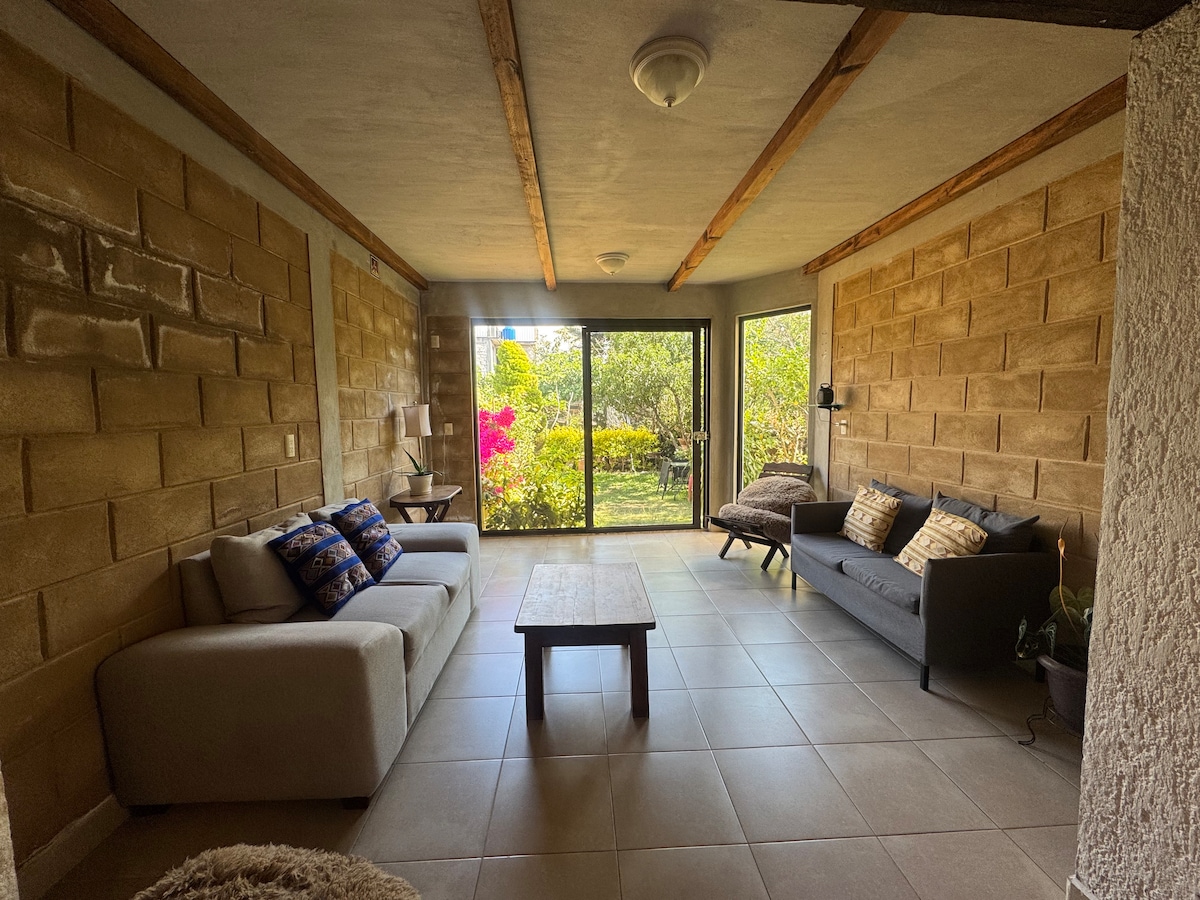 The perfect mix of down town confort and in house entertainment for your friends or family! From watching the sunset from the hammocks on the tree house, enjoying a bonfire in the yard to laying back after a day trip with Netflix and take out, in front of the fireplace. Plus, amenities like a spacious and equipped kitchen, yard games and bbq grill. In the heart of town! Only a few steps from the artisanal market, museums, cafés, convenience stores. 5 blocks from the central plaza.