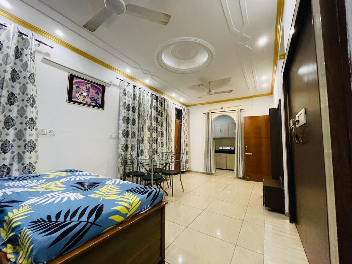 The fully furnished studio appartment, designed sophisticated and beautiful. it's a very spacious 380 sq.ft, luxury room, with full of positive vibes. Also guest will enjoy their full privacy, peace and comfort, as it's a separate unit/flat without any interference. * cooking/kitchen facility not provided. ENTRY:- Self chk-in entry access, through Hi-tech digital security lock, as it's a owner free property.