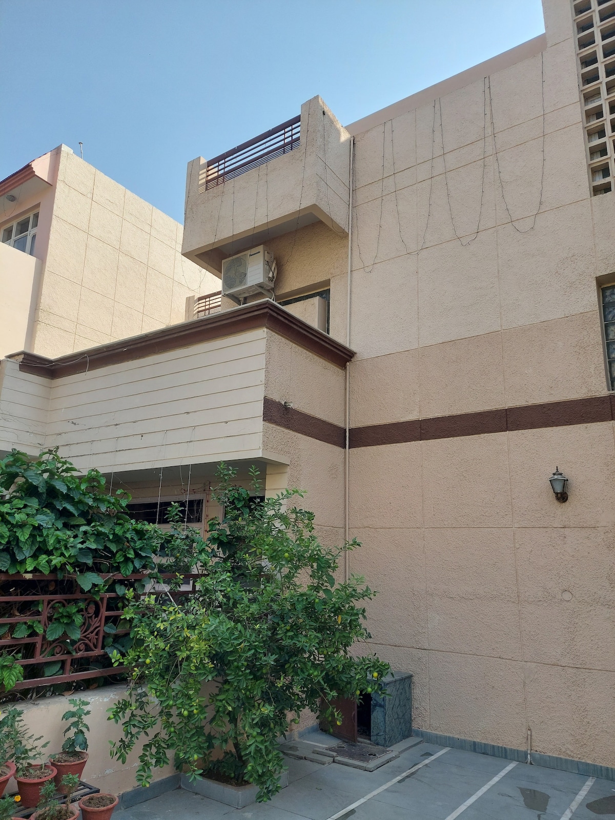 Relax and come together at our 3 bed designer flat inspired by Le Corbusier in the iconic centre of Chandigarh city. One of the quietest neighborhoods in the city. Enjoy a morning cup of coffee onto a breezy balcony with trees all around. Take a stroll across adjoining Rose Garden or shop at Sector 17 market. Be prepared to spot loads of sunbirds or hornbills. The flat is on the 1st floor with a lift. Next to 3 electric bike stands.