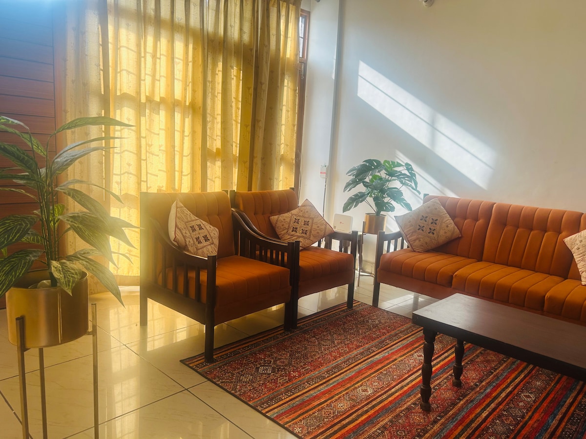 A cosy, peaceful and spacious flat situated on the quite side of Chandigarh. Cosy Cottage is a 4 bedroom, 1500 Square feet flat on the first floor of three-storey building with beautiful views of the park and greenbelt surrounding our area. Situated in Sector 48, Cosy Cottage is the closest sector to the International airport. With grocery stores just around the corner and excellent transportation system, everything is easily accessible.
