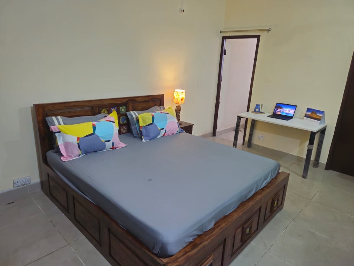 A clean, warm, spacious home in Chandigarh - only a short walk from the PCA Stadium and very close to Fortis Hospital. Enjoy ample sunlight, bright rooms, fast internet, and a fully equipped kitchen for a comfortable stay. 3rd-floor apartment with lift access and secure covered parking.