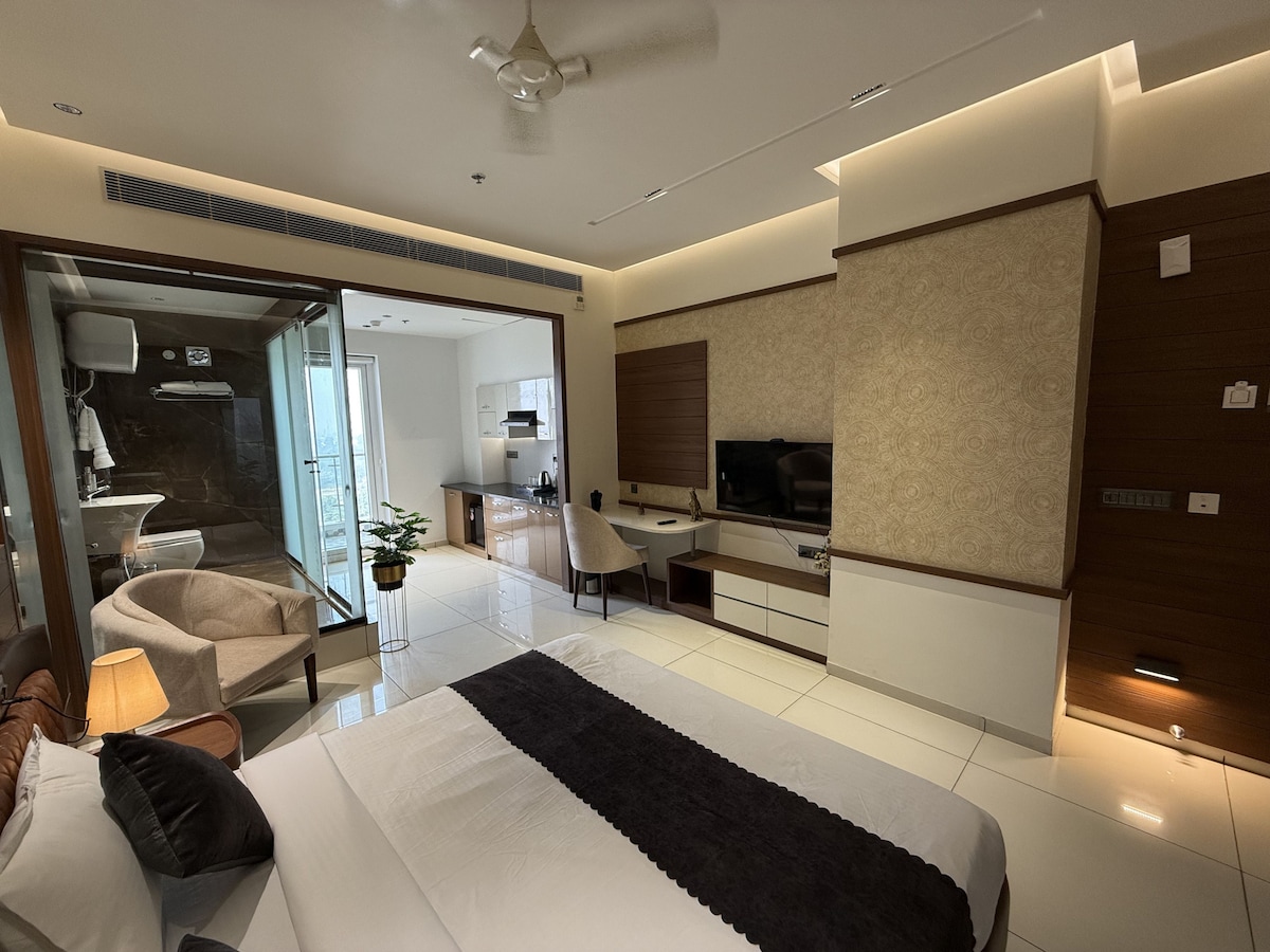 Bedroom & Kitchen - Mohali Walk Mall Luxe Suite