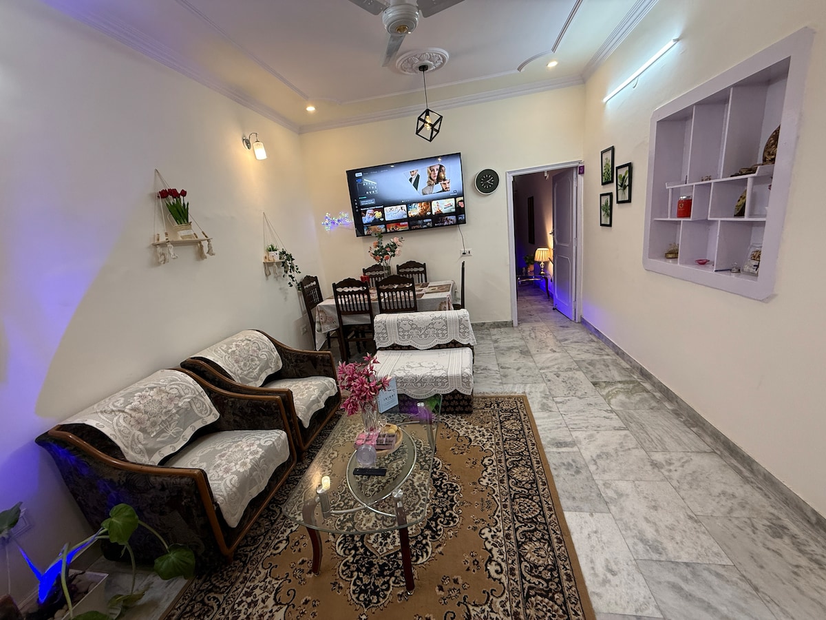 Discover refined comfort in this bright & airy retreat in Sector 70, Mohali, located on the third floor (stairs access) — a perfect getaway for travelers heading to Manali Shimla kufri/Dharamshala Enjoy a private Full HD projector for cozy movie nights. Prime location: • 25 mins to Chandigarh Airport Railway Station & Bus Stand • 15 mins to Fortis, Sohana & Ivy Hospitals • 5 mins to CP67 & Jubilee Walk Near Elante Mall, Rose Garden, Rock Garden & Sukhna Lake. Peaceful, safe & well-connected.