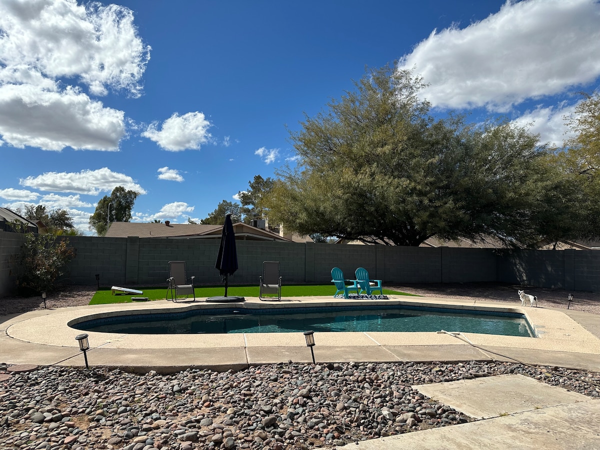 What a cozy, cute place to enjoy the best Arizona has to offer. Have the house to yourself to soak up the sun and relax. Enjoy the private pool (heated upon request and for an additional fee) and comfortable beds, full kitchen, living room w/fireplace, games and TV, try your foosball skills and challenge yourself with some chess. Enjoy the putting green and jump in the pool to cool off. In the heart of Chandler, close to downtown and Downtown Gilbert. Near the 101, 202 and I10. TPT 21551485