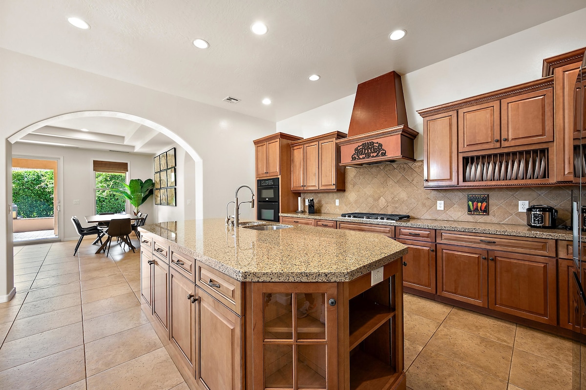 The Ritz Waters at Ocotillo home is located on the lake in a tranquil, golfing community, with plenty of entertainment opportunities nearby. Designed with your entertainment in mind, this home includes a Sonos sound system that can be heard throughout every room, a heated pool, plenty of outdoor seating areas, a BBQ grill, pool table, and a fully stocked kitchen with Kitchen Aid Professional Series appliances and all the spices and pantry necessities to truly make the most out of your stay!