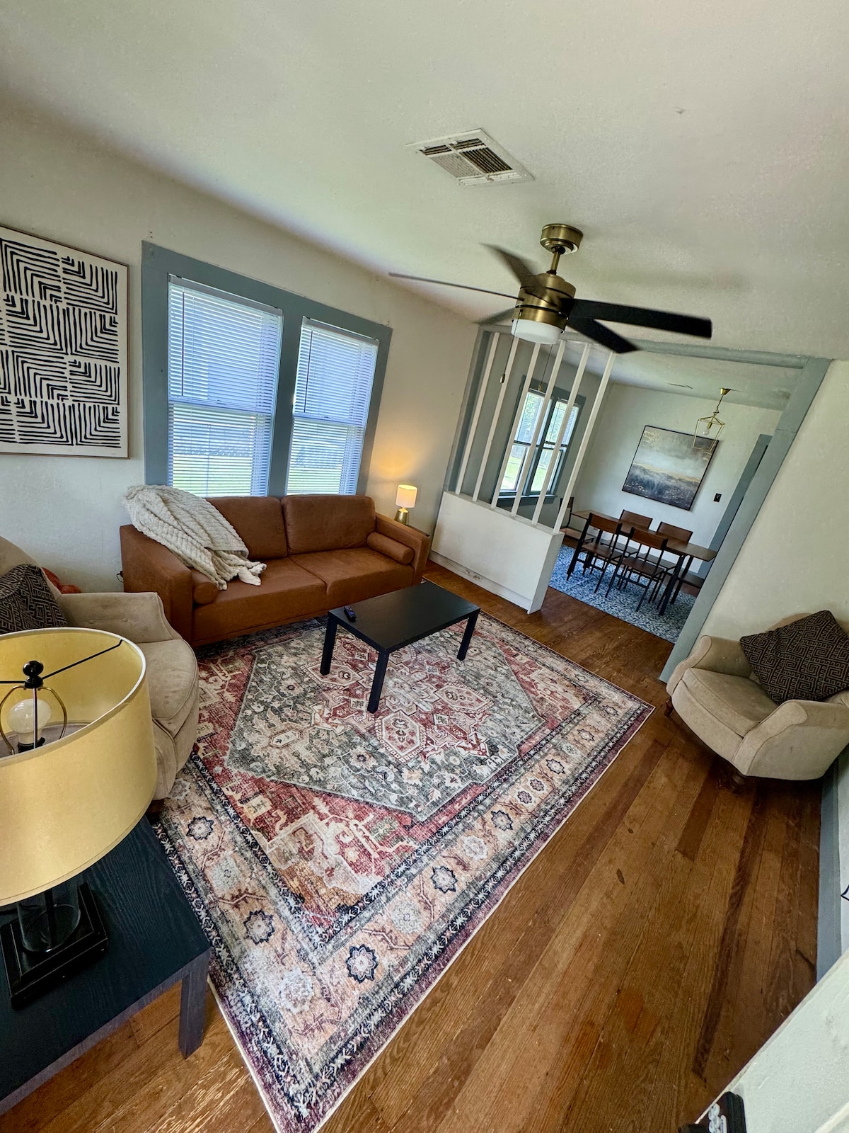 Be close to everything - conveniently located 1 block off main street - making it easy to plan your visit. Our smart enabled home features an open floor plan from the dining nook and coffee bar with a Kuerig, through the gally kitchen to the living room featuring roku tvs and comfy queen beds in each room , wifi, washer/dryer, privacy fenced area with gill and fire pit - the Roadrunner is fully eqipped with all the amenities of home for your stay. Private feel in a centrally located home.