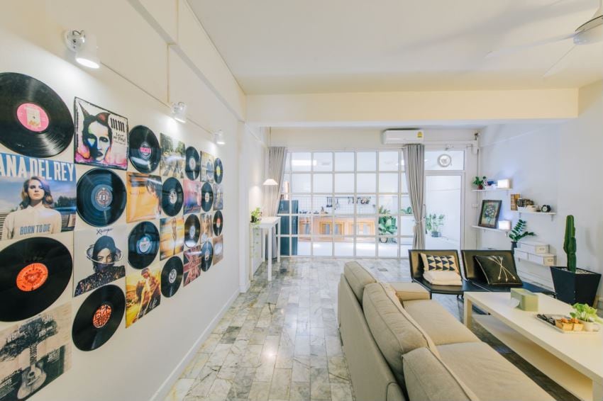 The newly renovated floor with 1 large studio bedroom (air con)with 2 king size bed & 1 single bed room (fan) decorated with a touch of Lanna-Heritage Style. Our warm and cozy townhome is equipped with large kitchen. We are located only 2 km from the famous Nimmanhaemin area