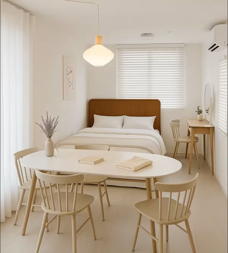 Newly redesigned from our former Penthouse 92, this top-floor residence is a refined interpretation of Korean aesthetics and modern comfort. One bedroom is inspired by the traditional Korean maru —surrounded by bamboo-toned textures and architectural lines that echo a quiet pavilion. A raised tile platform bed is layered with a Korean-style mattress, creating a grounded yet elegant sleeping experience. you will also find a private Korean-style foot spa — a calming ritual space.