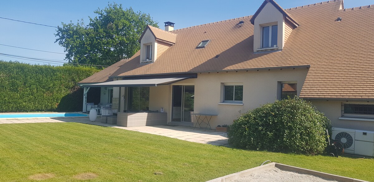 - Just 10 minutes from the racetrack and 5 minutes from the tram, enjoy this architect-designed house in a peaceful setting on the doorstep of Le Mans. - 3000m² garden, double garage and 2 private parking spaces. - Covered 5x10m swimming pool, petanque area. - 60m² terrace with bbq. The entire house is at your disposal, except for our bedroom and the study. You have access to all the traditional comforts: Wifi, TV, swimming pool, etc... A bathroom on the first floor with the 3 bedrooms.