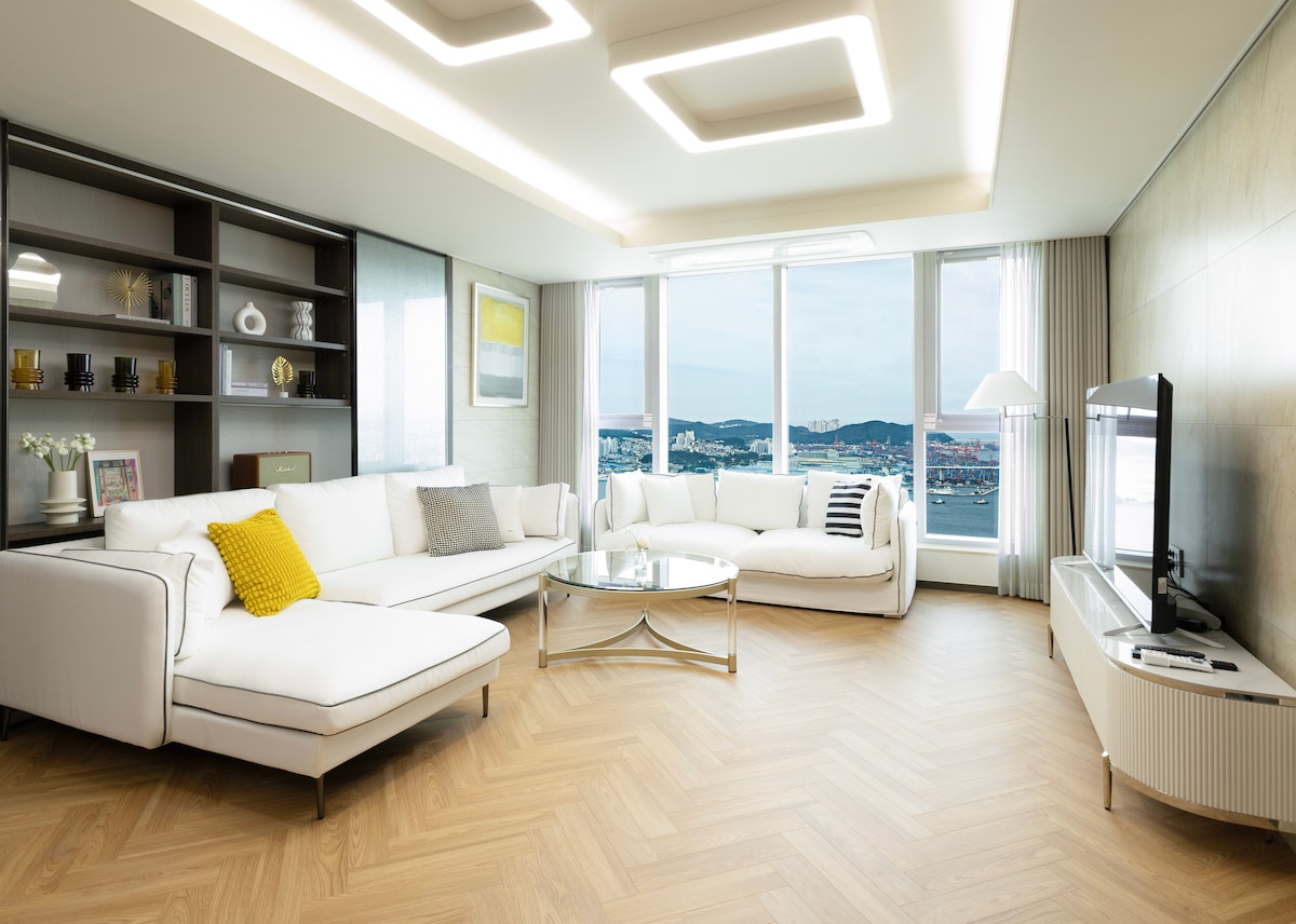【釜山站5分钟】#海景#高层#连接-123平方米|最多8人|4张床|炊事+洗衣O/行李寄存+停车