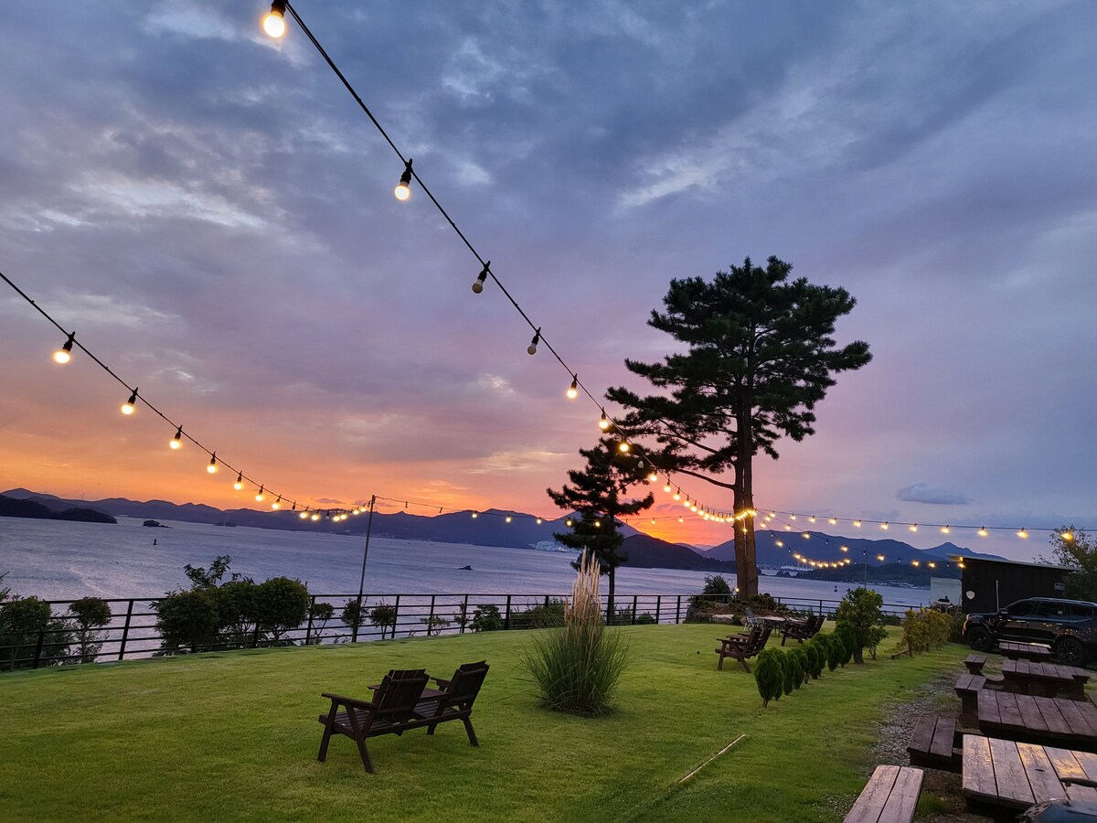 이쁜노을과 바다가 보이는 한적한 독채팬션. 잔디가 깔린 마당과 그네와 모래사장이 갖춰진 조경환경 구비. 방 3개에 넓은 거실및 노래방시설 보유. 바베큐 시설 완비(겨울 사용대비 방풍시설 설치완료). 불멍가능. 많은 인원이 즐길 수 있는 넓은 공간. 유아들을 위한 소형 간이 풀장 시설 보유.(사전예약필수) 농어촌민박사업 신고번호 하청면 제154호 한달살기 목적으로 장기 예약가능합니다.