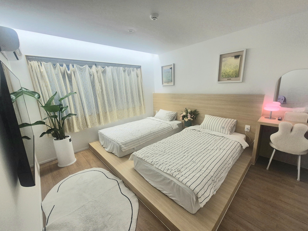 [温丹彩] #感性住宿#家庭旅行#团体住宿#3间卧室#酒店床上用品#金连山站1分钟#光安里海滩3分钟