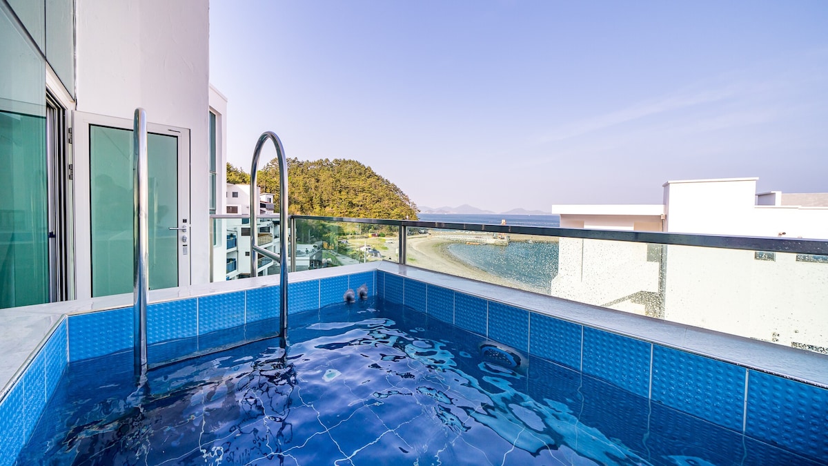 안녕하세요. 가족이나 친구들과 함께 이용하기 좋은 약 70평의 럭셔리 프라이빗 풀빌라입니다. 저희 숙소는 방 2개, 거실 1개, 욕실 2개, 화장실 1개, 건식사우나, 테라스 공간으로 구성되어 있습니다. 방 마다 전용 욕실이 있어 두 가족이 함께 사용하기에 좋습니다. * 1번 방 : 퀸 베드 1개, 전용 욕실 * 2번 방 : 퀸 베드 2개, 전용 욕실 테라스에서는 오션뷰를 즐기며 식사를 하실 수 있는 테이블이 배치되어 있습니다. 수영장에서 물놀이를 위한 선베드, 튜브 등이 배치되어 있습니다. * 수영장 크기 : 가로 8.4m x 세로 3.2m x 깊이 0.8m