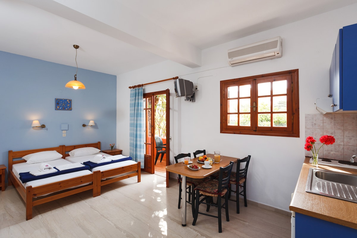 The studio is located in the west side of Crete 50km from Chania city. Arriving here you can admire the incredible view of the area, Falassarna is now one of the most famous destinations in Crete both for its beaches and for ecological interest. Our studio is accesible thru the parking entrance of our family home. The studio can accomodate 4 persons, with two single beds and one double bed, a kitchen and a private wc& bathroom with shower. The kitchen is equipped with amenities .
