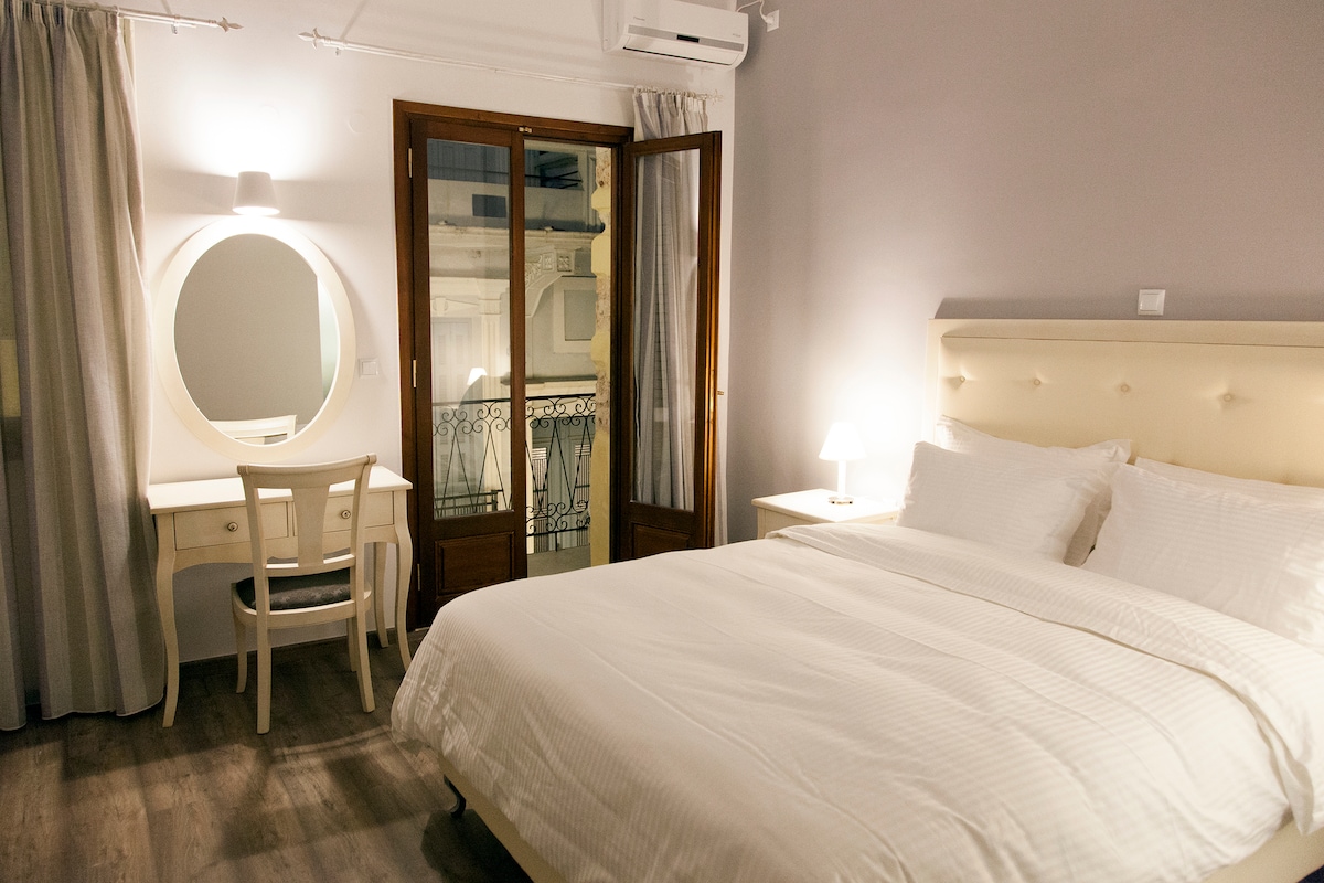 Double bedded room of 16 squad meters that can accommodate up to 3 persons (2 adults & 1 infant < 2 y.o.). The room is situated to the first floor of the building, has a window to the front side of the hotel with alley and old town view, and a queen sized double bed. The room includes fridge, a/c, wc, shower and free wi-fi. You can see the other Katerina Traditional Rooms in these links: https://www.airbnb.gr/rooms/3519711 https://www.airbnb.gr/rooms/4959677 https://www.airbnb.gr/rooms/17010151