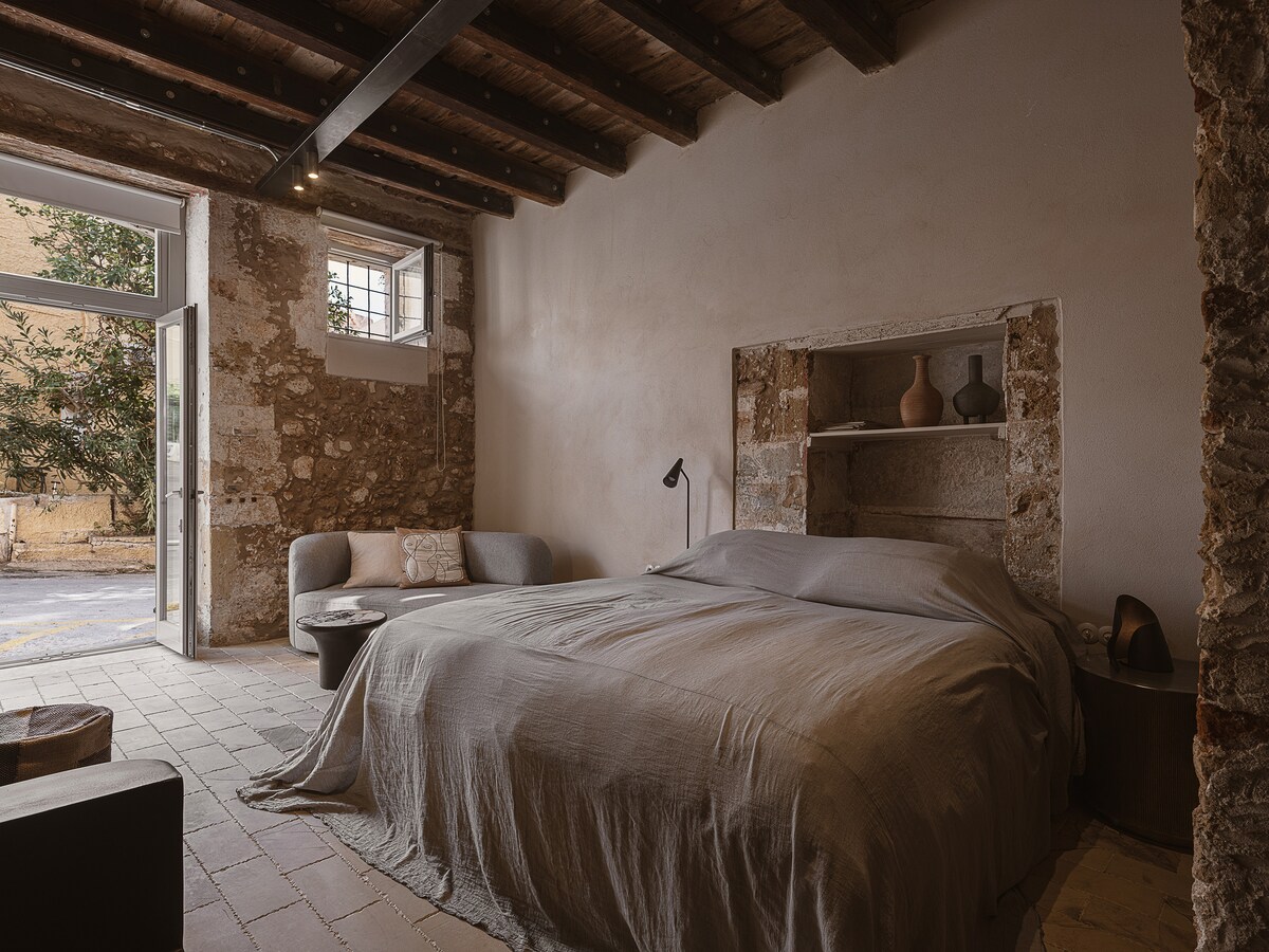 Al Daliani Minaret Rooms welcomes you in the heart of the Old Town of Chania. A complex of rooms with a modern style with impeccable interior design.Your stay will be pleasant while at the same time it will be a journey in the long history of the city. They are 14 km from Chania International Airport and 8 km from the port of Souda. The nearest sandy beach of Nea Chora is 3.2 km. * Ideal for couples & friends * Free WiFi, A /C * Shared terrace with outdoor furniture.