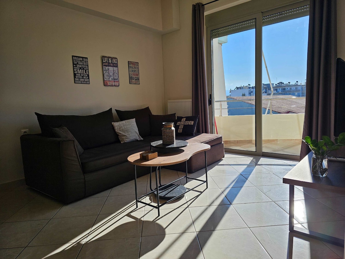 Nestled in the heart of Chania, this one-bedroom apartment on the 4th floor promises a stay filled with comfort and serenity. The apartment boasts panoramic sea views that will leave you mesmerized. The spacious veranda, furnished with a thoughtful selection of outdoor furniture, serves as a perfect spot to soak in the breathtaking views of the sea.