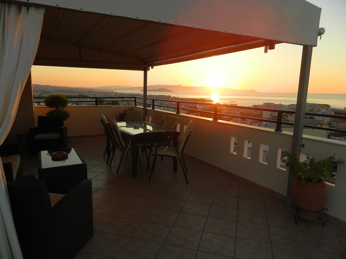 Part of Alectrona Living, Crete complex. A brand new luxurious apartment right at the edge of the hill of Platanias, close to the center of Platanias but far away from the crowds and noise of the main street. The view is breathtaking, the sound of the waves and the colors of each sunset will recharge your batteries and relax your mind. One of the highlights of staying here is the communal swimming pool, which offers breathtaking views of the Aegean Sea