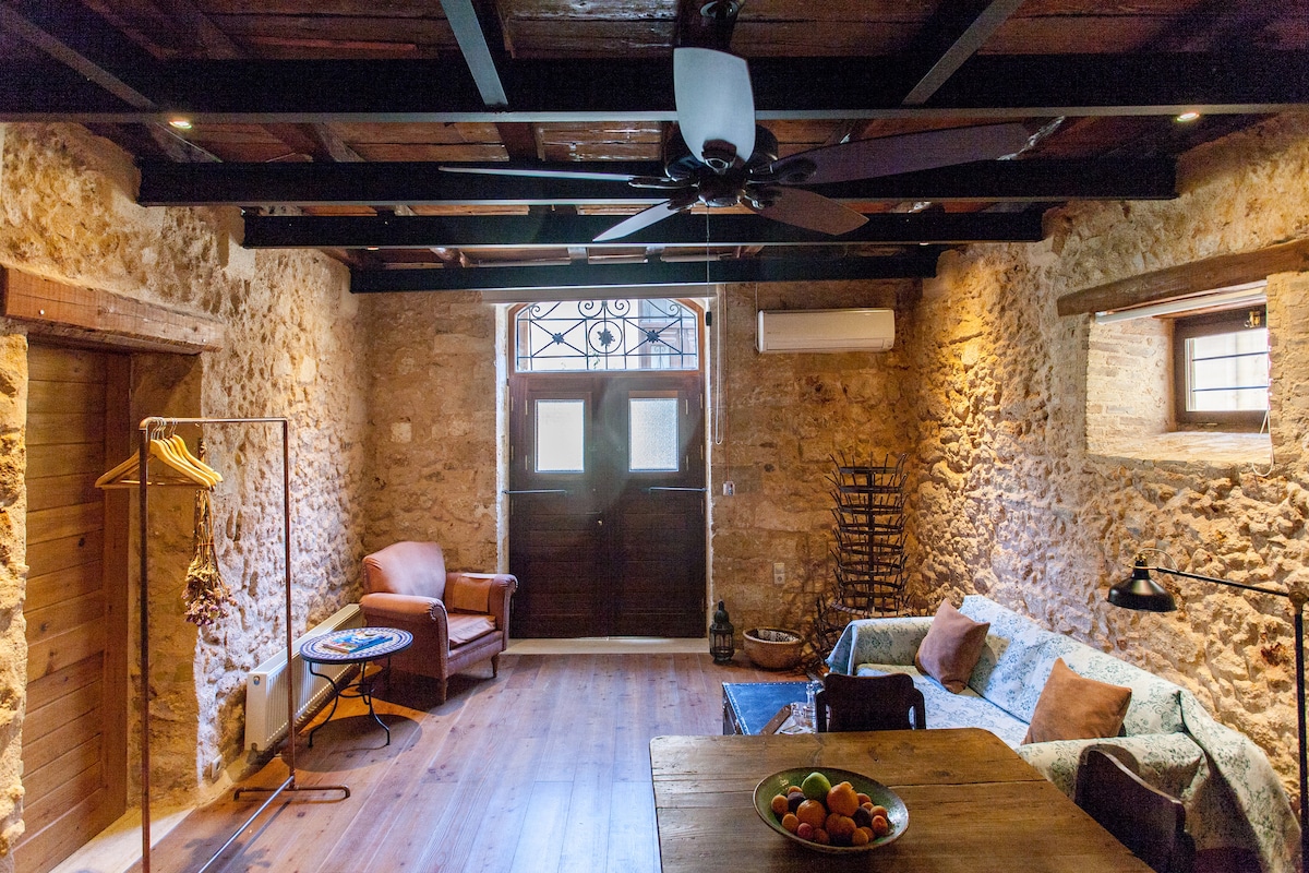 The apartment Anaxagoras consists of an open-plan residential complex and is characterized by an imposing original Venetian arch, which separates the kitchen and living area from sleeping. It has direct access to your (private) garden with barbecue and large dining table with sea view. Everything has been renovated with lots of love for the traditional details in 2017. Here you can inhale a touch of Cretan history in a unique and comfortable atmosphere.