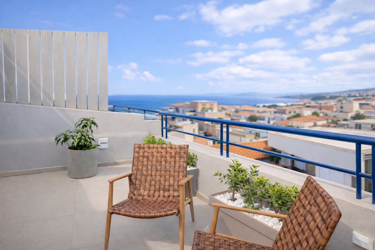 Welcome to Blue Horizon Kissamos –your perfect escape in Western Crete. Perched on a peaceful hilltop overlooking the stunning bay of Kissamos, this modern apartment offers the ideal combination of privacy, comfort, and breathtaking views. This elegant first-floor residence features a private rooftop terrace with a heated jacuzzi and sunbeds, perfect for relaxing while enjoying unobstructed 360° sea and mountain views-your own serene retreat after a day of exploring the island.